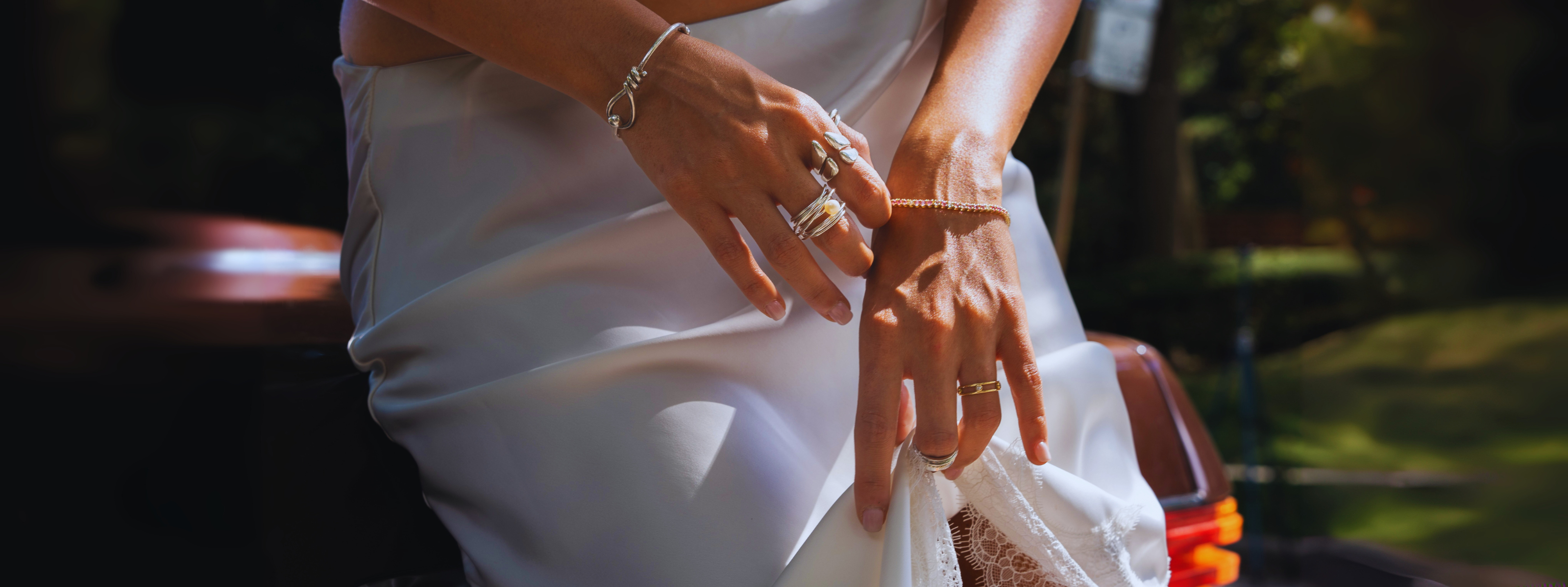 To keep pieces looking their best, gently wipe with a soft cloth after wearing, store separately, and avoid contact with perfumes, lotions, and harsh chemicals.