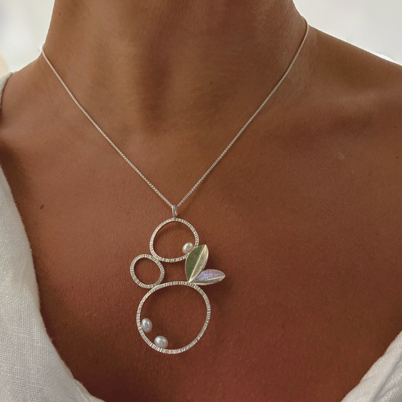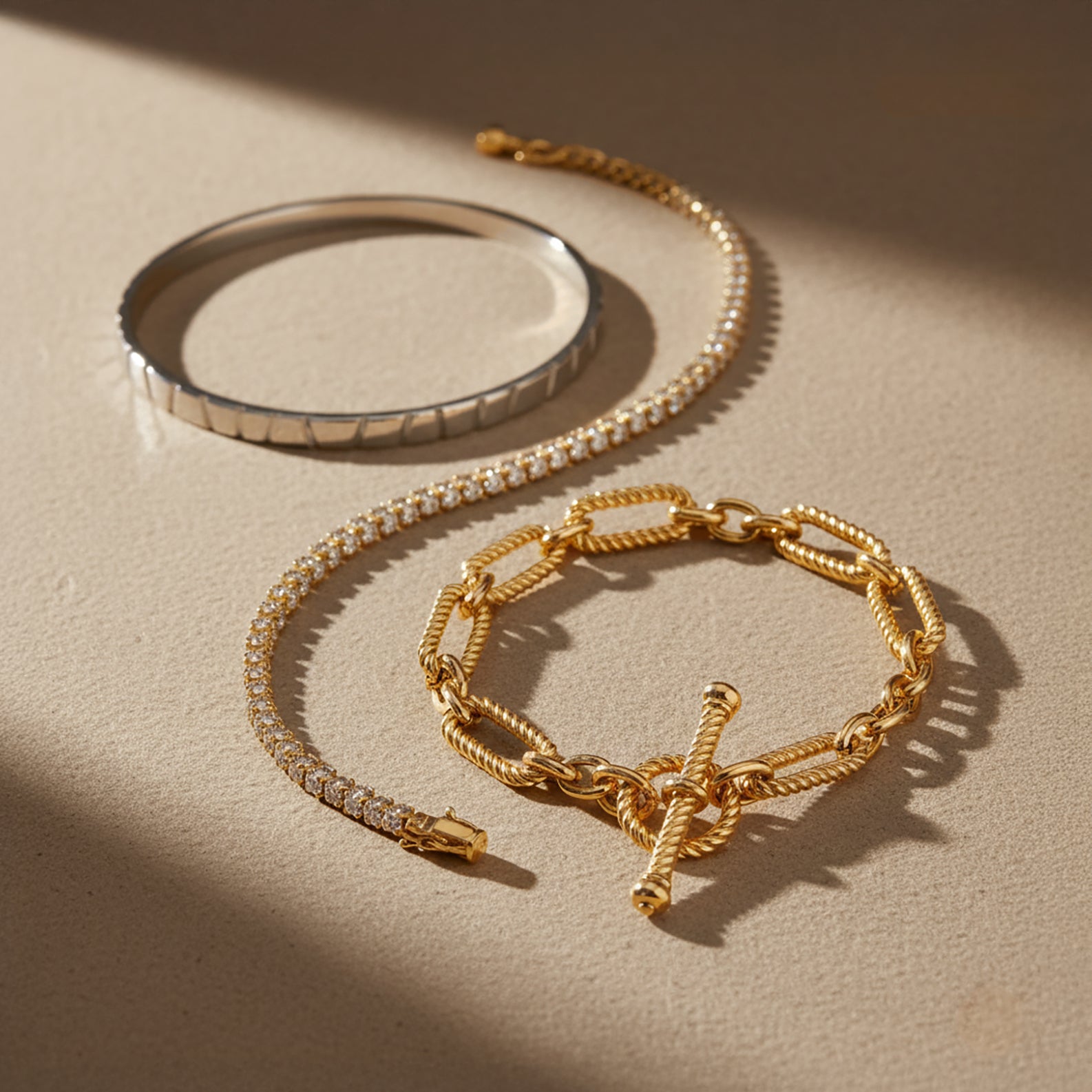 To keep pieces looking their best, gently wipe with a soft cloth after wearing, store separately, and avoid contact with perfumes, lotions, and harsh chemicals.